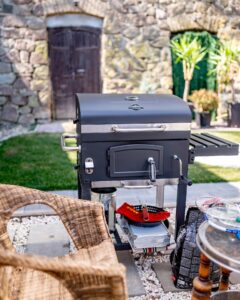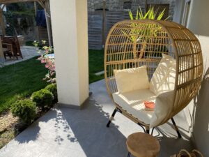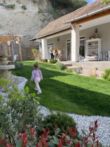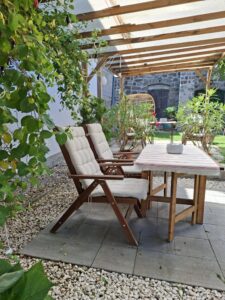 2 pergola, asztalok, székek, fotelek, tavasztól prémium jacuzzi, kerékpár ingyenes használata, golf autó bérlési lehetősége, kert mozizás, grill felszerelés, jóga matrac.