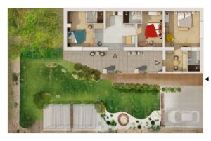 2 szoba, 2 fürdőszoba, konyha+nappali, terasz, klíma és padlófűtés, igényes felszereléssel, kényelmes ágyakkal, kandallóval.Minden 2 fős szobához tartozik önálló fürdőszoba.